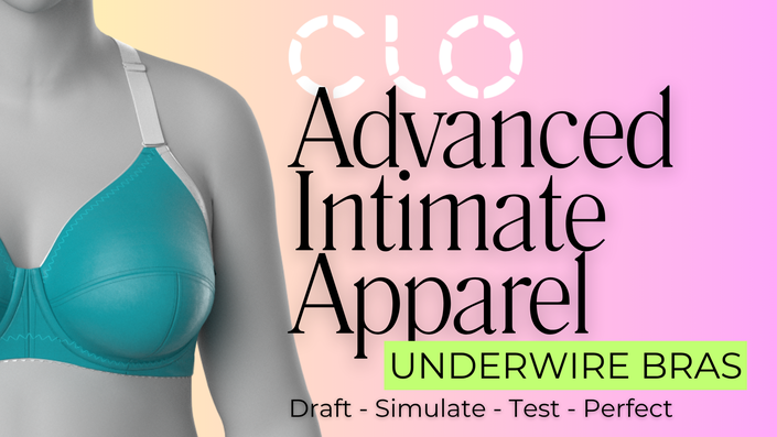 Our first courses will focus on using Clo3D for intimate apparel, which we firmly believe is the future of the industry. We will go thorough the workflow of importing and arranging patterns, applying fabric and fit details and creating a final photo realistic render.